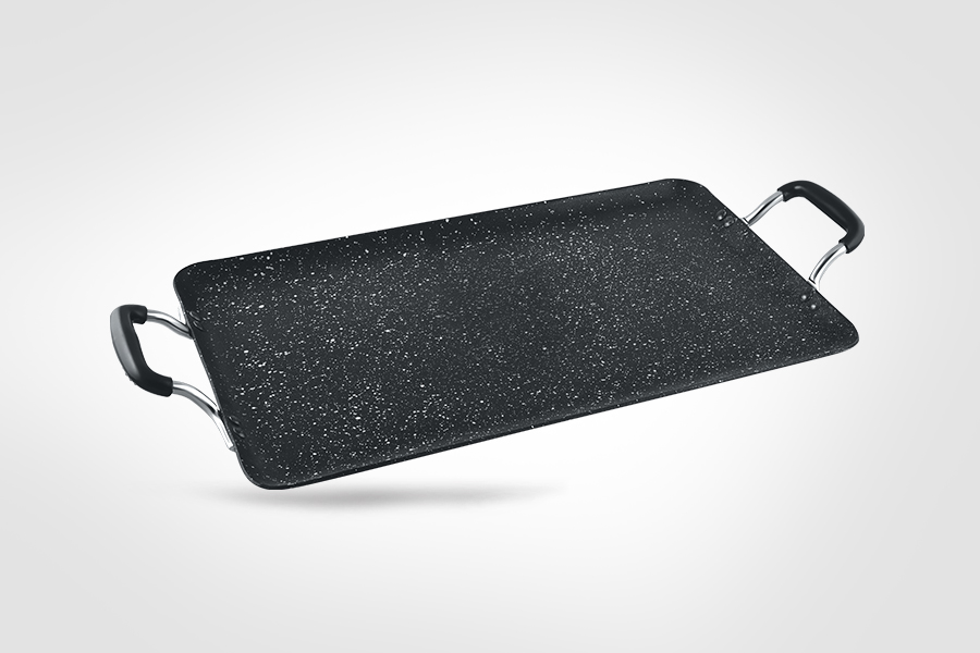 2050 | Aluminum Griddle Tray / Inside and Outside Marble Coating. With Silicon Handles